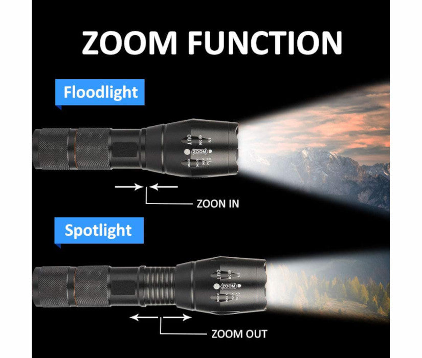 A zoomable tactical flashlight designed for powerful and reliable illumination.